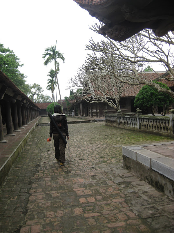 Ngoài sân chùa cạnh đường lớn